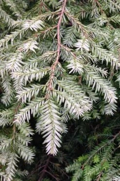 The Moon Frost Canadian Hemlock is easy to grow in most any moist but well-drained soil of average fertility and part shade. It will handle the morning and evening sun but appreciates some shade or filtered sun during the afternoon hours. Whether growing in the ground or in pots, constantly soggy soil or standing water is problematic, so plant in a well-drained site or pot and avoid overwatering. Provide only enough water to keep the soil damp to moist. Established plants have moderate drought tolerance and will only require an occasional drink during prolonged periods of drought. Maintenance is minimal. No pruning required except to snip a stray branch tip that is spoiling the shape of the plant.